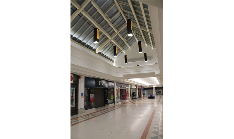 The lighting to the large atrium spaces included linear wall washing to the sides of the spaces (above the retail units) to help create the ‘feel’ of brightness and within the centre of the space were positioned an array of evenly spaced bespoke rectangular pendants.