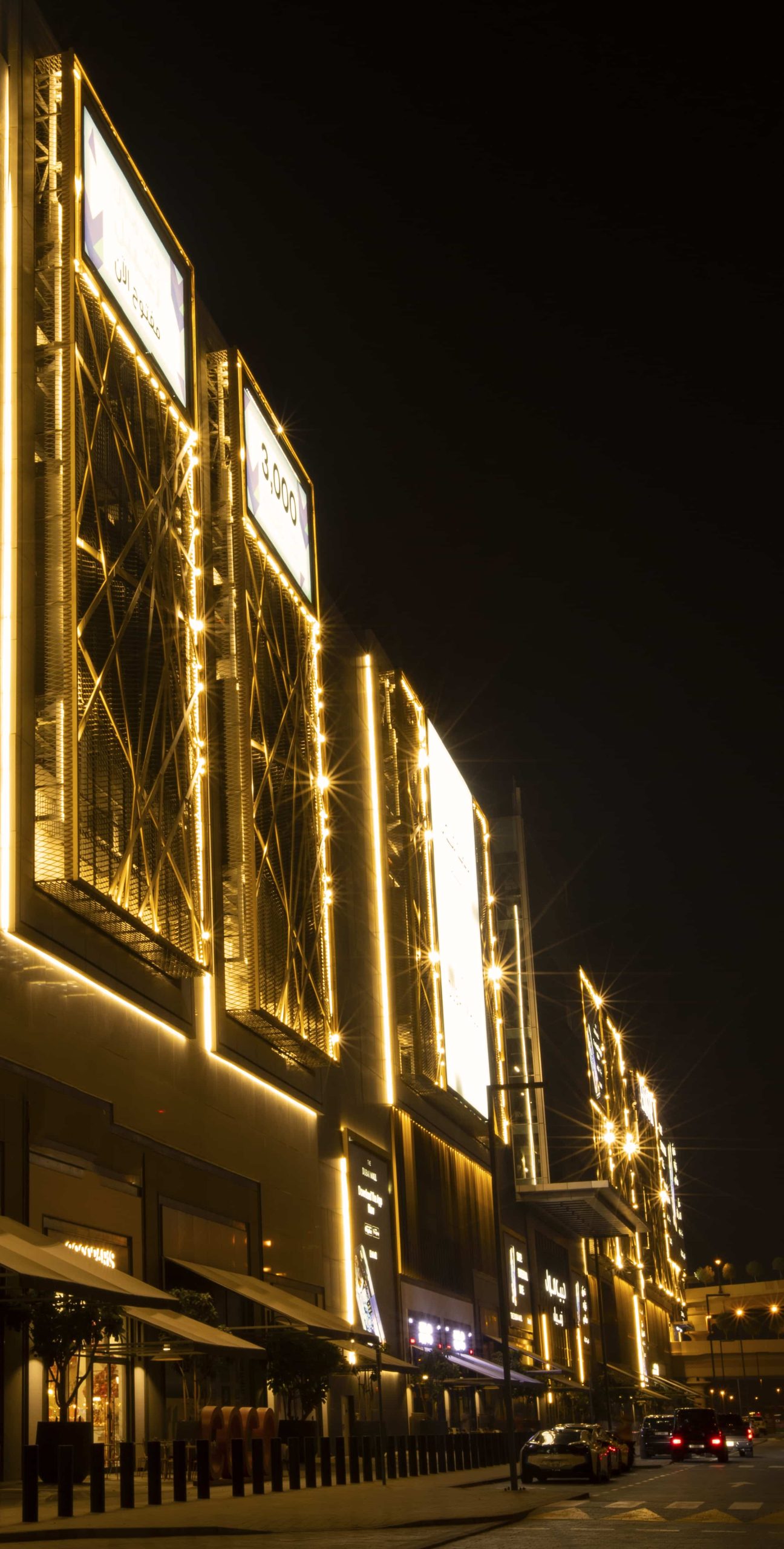 Our IP66 17W Fortis 2 product ticked all the boxes, ensuring a stunning effect and a maintenance-free installation, which is important where access is also a concern. With thousands of daily visitors, maintenance is not practical or conducive to the customer’s experience. The exterior of the mall reflects the luxury and scale of the interiors. Façade lighting makes the mall stand out on the Dubai skyline.