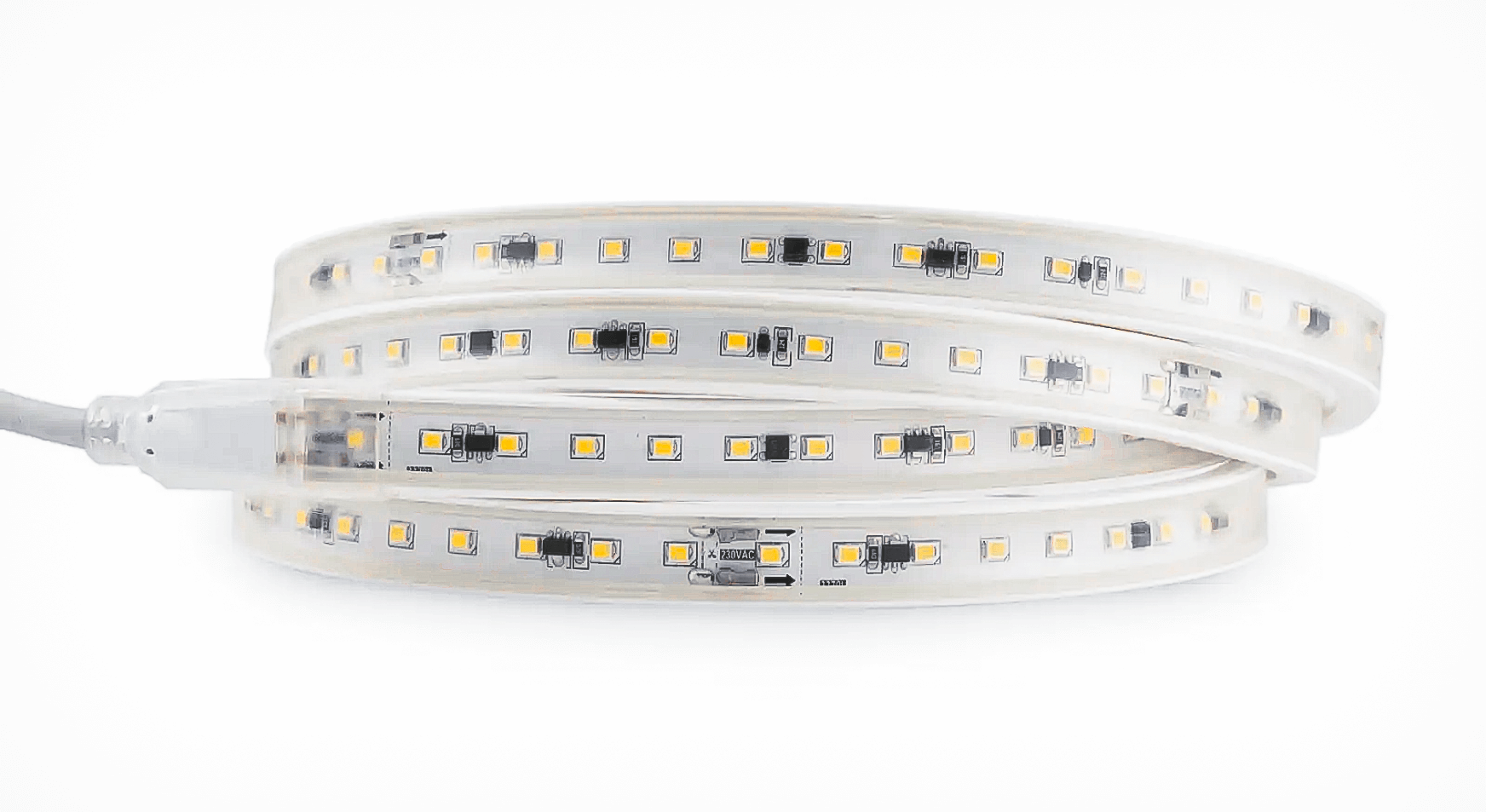 Introducing Flexi-strip, a one-of-a-kind flexible linear LED solution that eliminates the need for a 24V driver, as it can be directly powered from a standard mains 220V-240V source. This innovative lighting option consumes only 8 watts per metre while delivering an impressive 900 lumens per metre and boasting an IP65 rating for outdoor use.