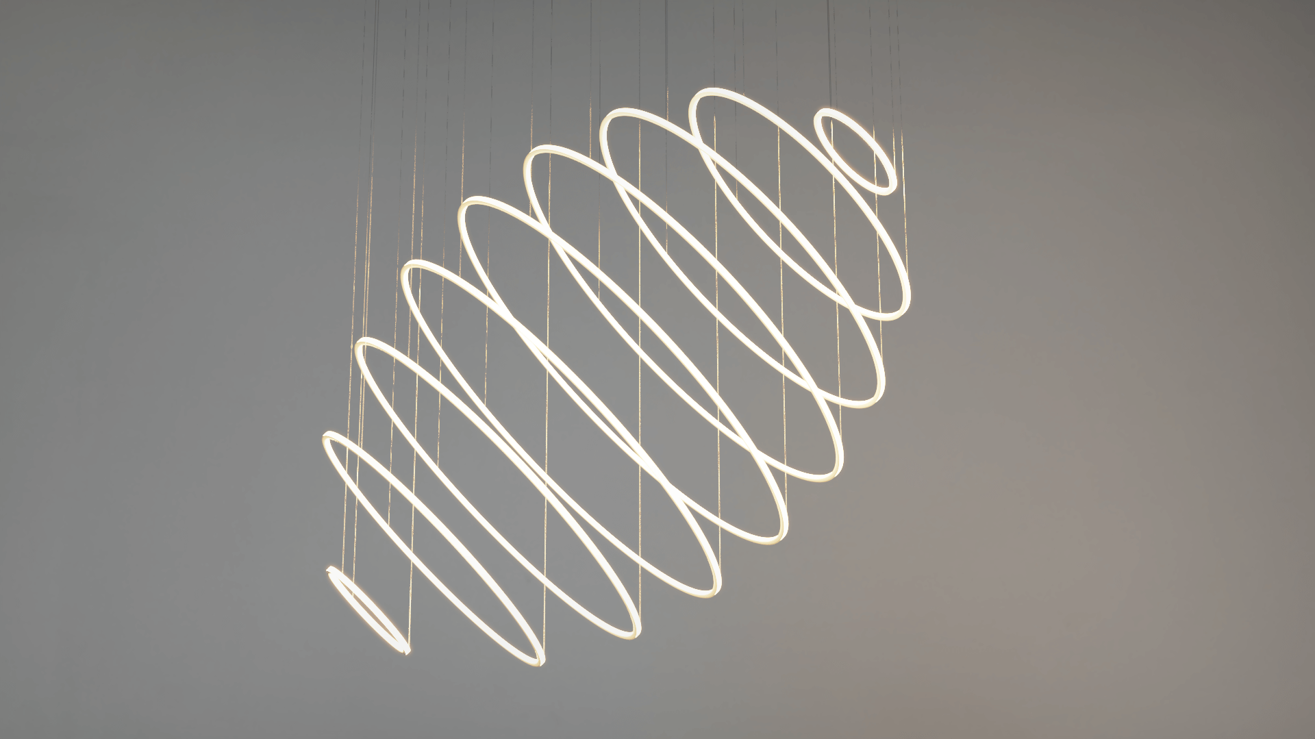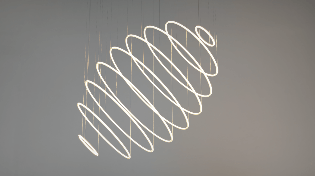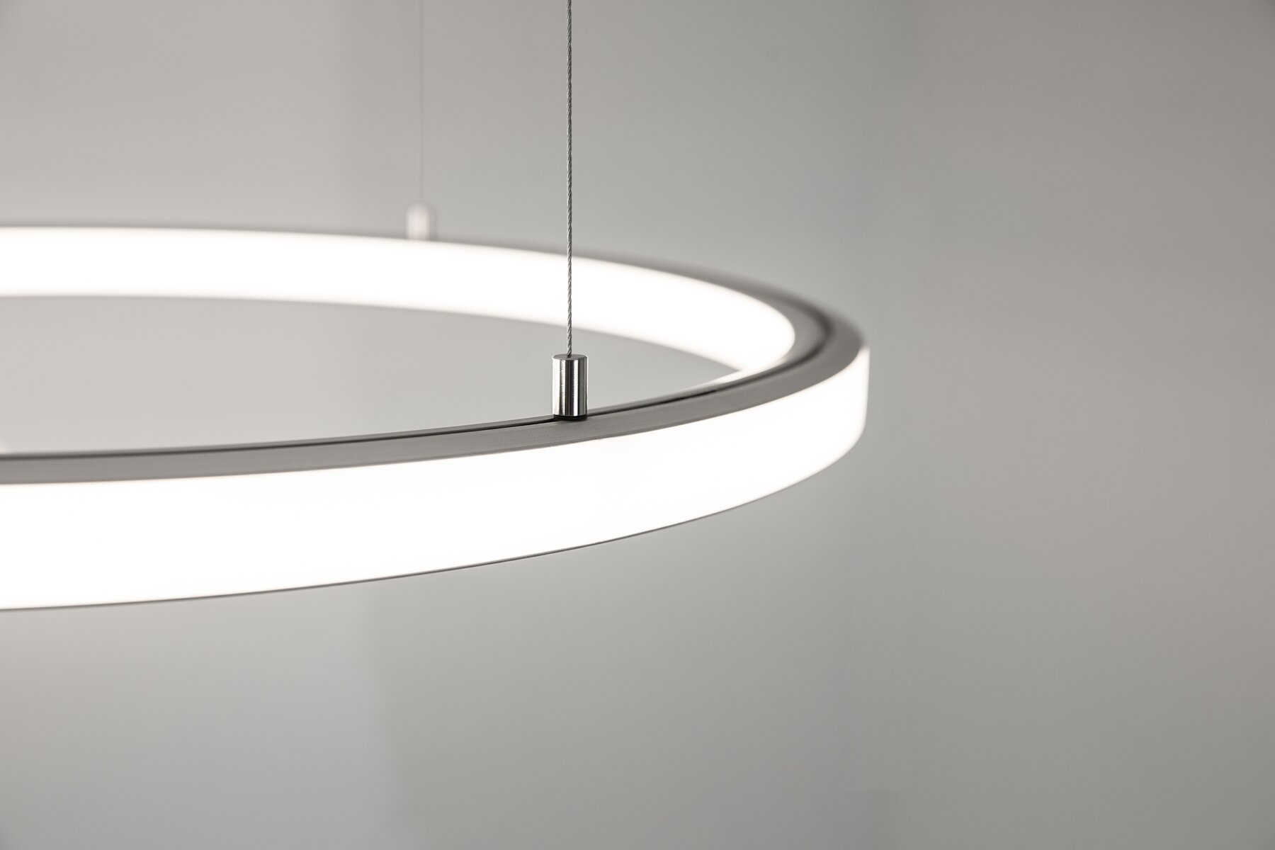 Proteus G2 represents a series of pendant luminaires with a distinctive circular design, featuring illumination on both sides for a sleek and modern appearance. This unique characteristic enhances its suitability for a variety of environments, including homes, offices, retail spaces, and hospitality venues. Available in three color temperatures and offering options for 80 and 90 CRI, Proteus G2 provides flexibility with two power choices, all equipped with dimming capabilities as needed. The luminaire comes in various diameters to accommodate diverse requirements and boasts a distinctive conductive suspension system that eliminates the need for visible cables, resulting in a stylish and clean aesthetic.